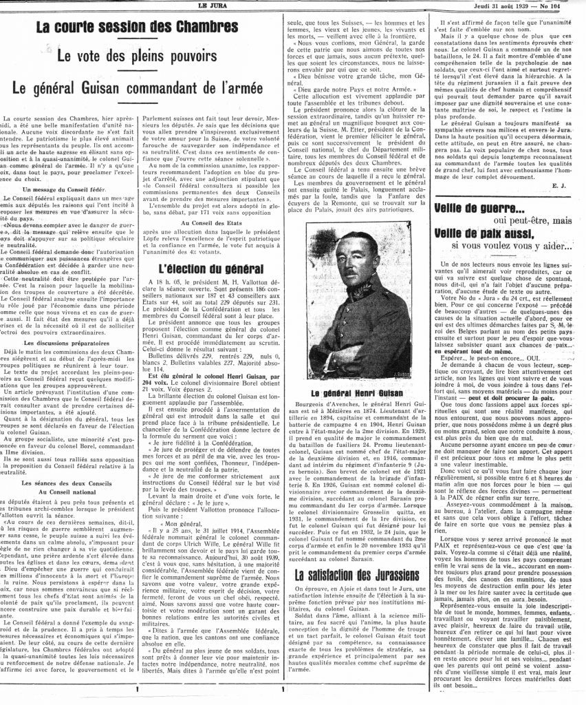 (source:e-newspaperarchives.ch) No 104 31 août 1939