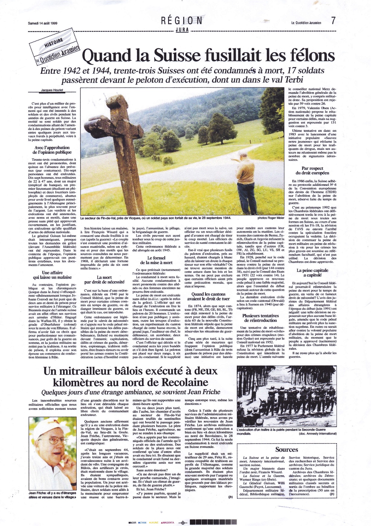 “Un jour, – en 1942 – j’ai dû me rendre à Berne avec d’autres soldats, une vingtaine. Notre mission: devant nous, un casque avec des billets. Il fallait en sortir un. Celui qui possédait un billet avec un numéro, s’avançait, pour faire partie d’un peloton d’exécution.