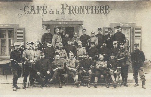 le 15 février 1917, Pierre Bucher, chef du poste de renseignement de Réchésy, discute avec des soldats suisses