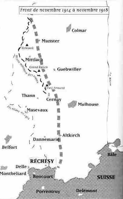 est un village français situé aux confins de la Suisse et du département du Haut-Rhin. La borne des Trois Puissances rappelle que Réchésy fut pendant 44 ans village frontière entre l’Empire allemand, qui avait annexé l’Alsace et la France.