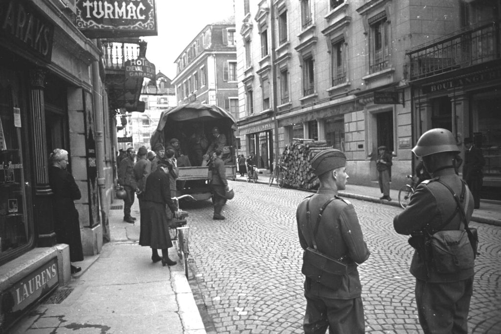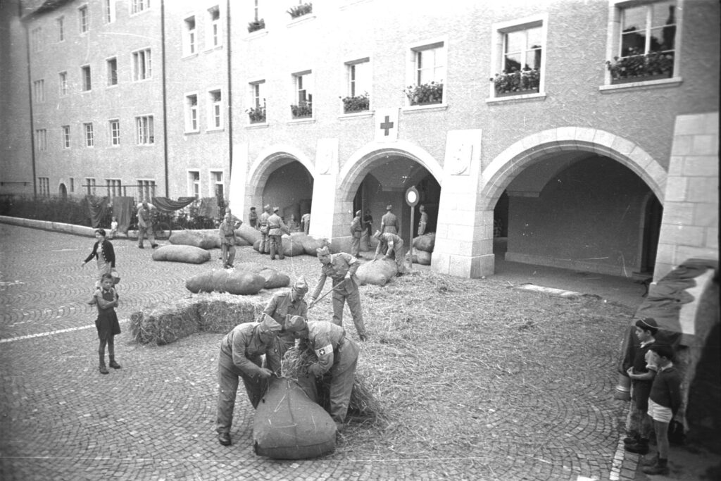 Les photographes étaient mal vus, protection du secret militaire oblige. On pratiquait une défense aérienne passive (DAP), mesures de protection en cas de bombardements, réseau de surveillance et d’alerte, abris souterrains, information par voie d’affiches, de radio, etc. (source: H. de Weck)