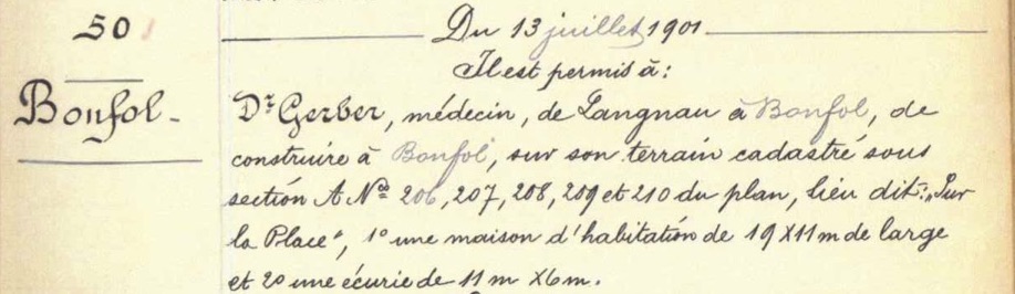 Dans son journal tenu régulièrement, le major Wilhelm Hugo Francke écrit: samedi 29 décembre 1917, Bonfol: “Nous avons pris nos postes à la frontière d’une façon impeccable. J’avais mon quartier chez un docteur Gerber, médecin. La maison était parfaite, une villa avec chauffage central. Il y avait une belle écurie avec des boxes pour les chevaux”.