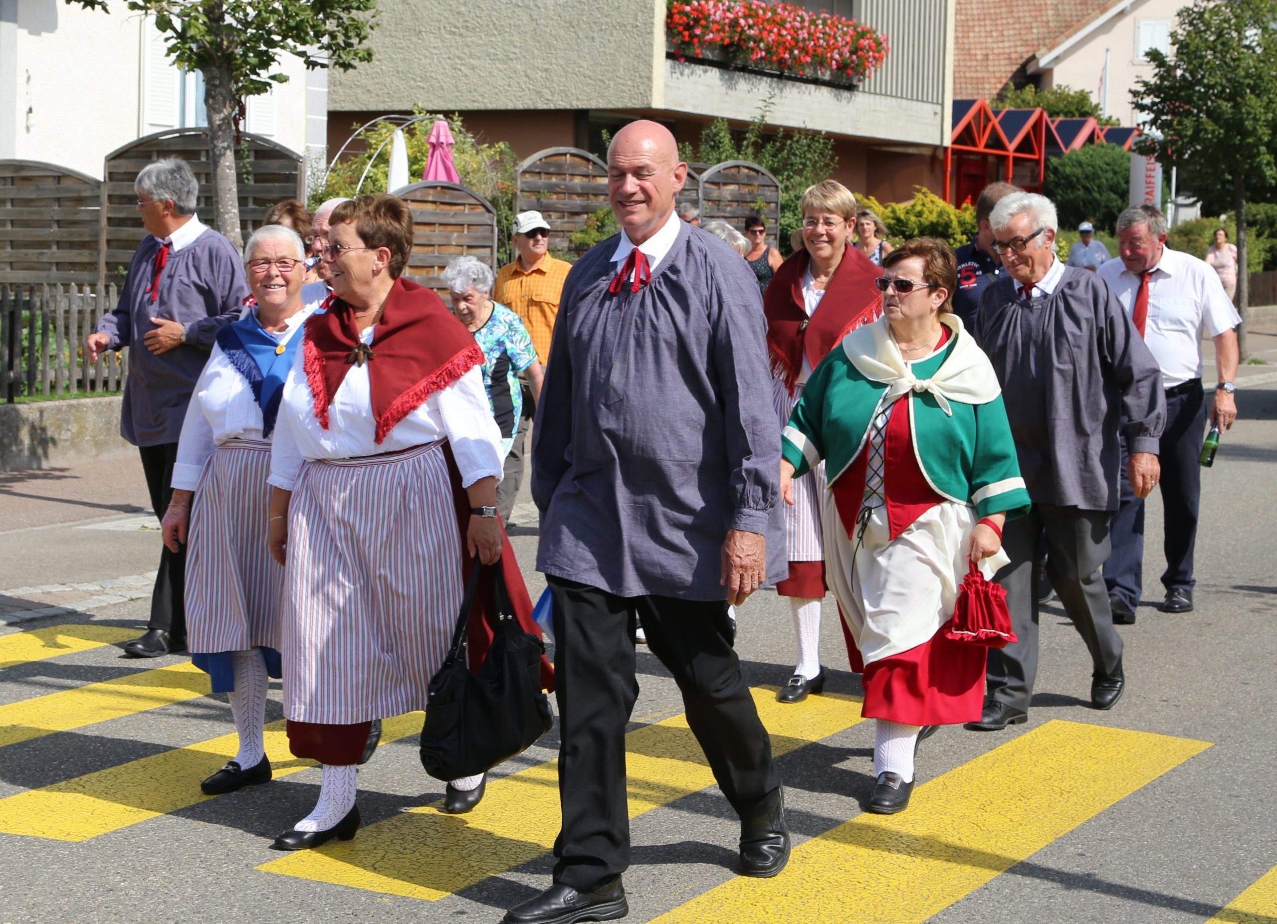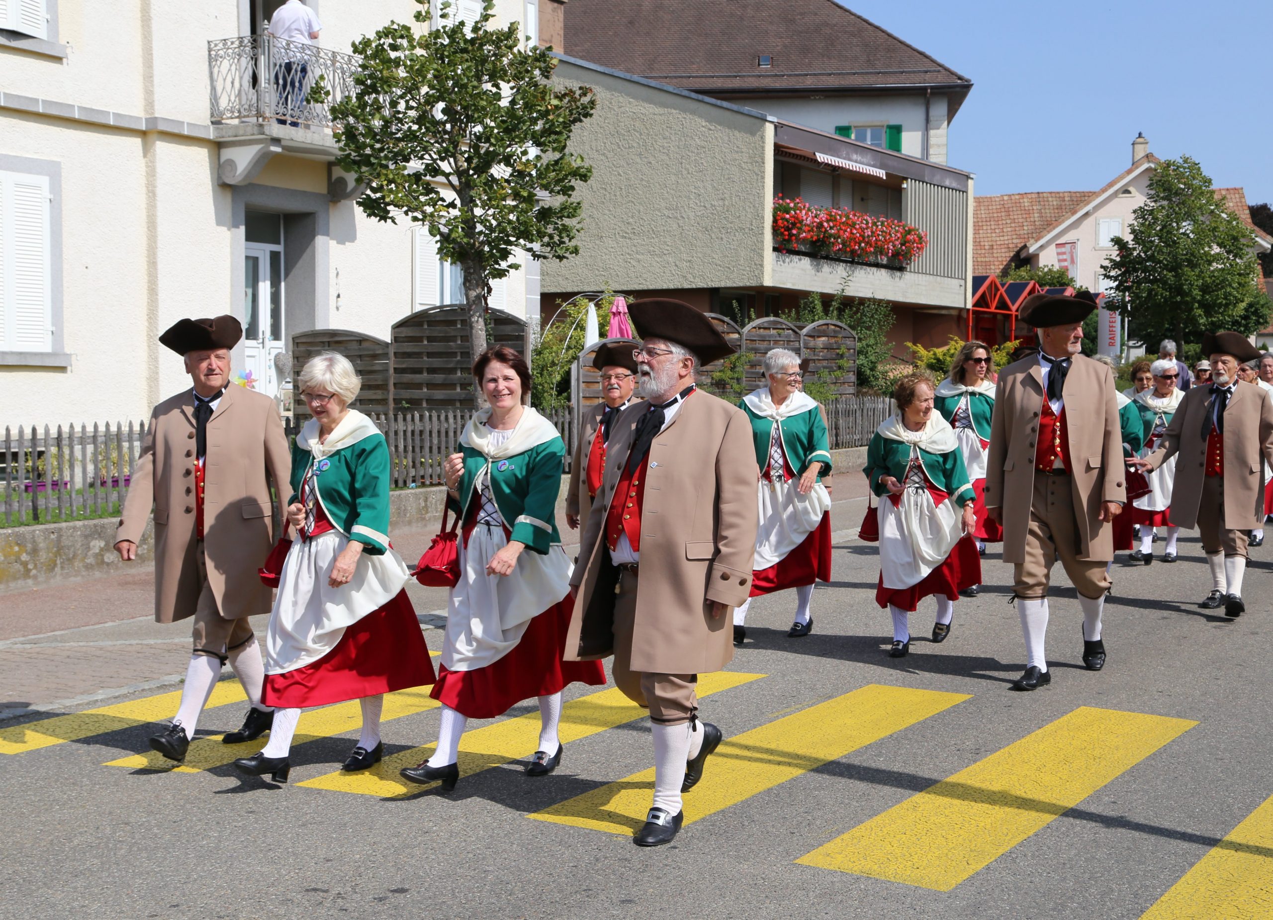 Devant le Centre paroissial, la délégation Escadron 1972 Aarau, attend le public qui se mettra en formation de cortège
